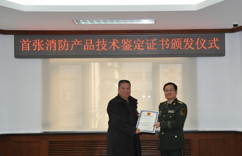 2013年12月31日,公安部消防产品合格评定中心(以下简称评定中心)在京组织召开了中国首张消防产品技术鉴定证书颁发及合格评定工作座谈会。公安部消防局科技处余威高级工程师、国家固定灭火系统和耐火构件质检中心张少禹副主任、上海金盾消防安全科技有限公司代表及评定中心的有关工作人员出席了会议。